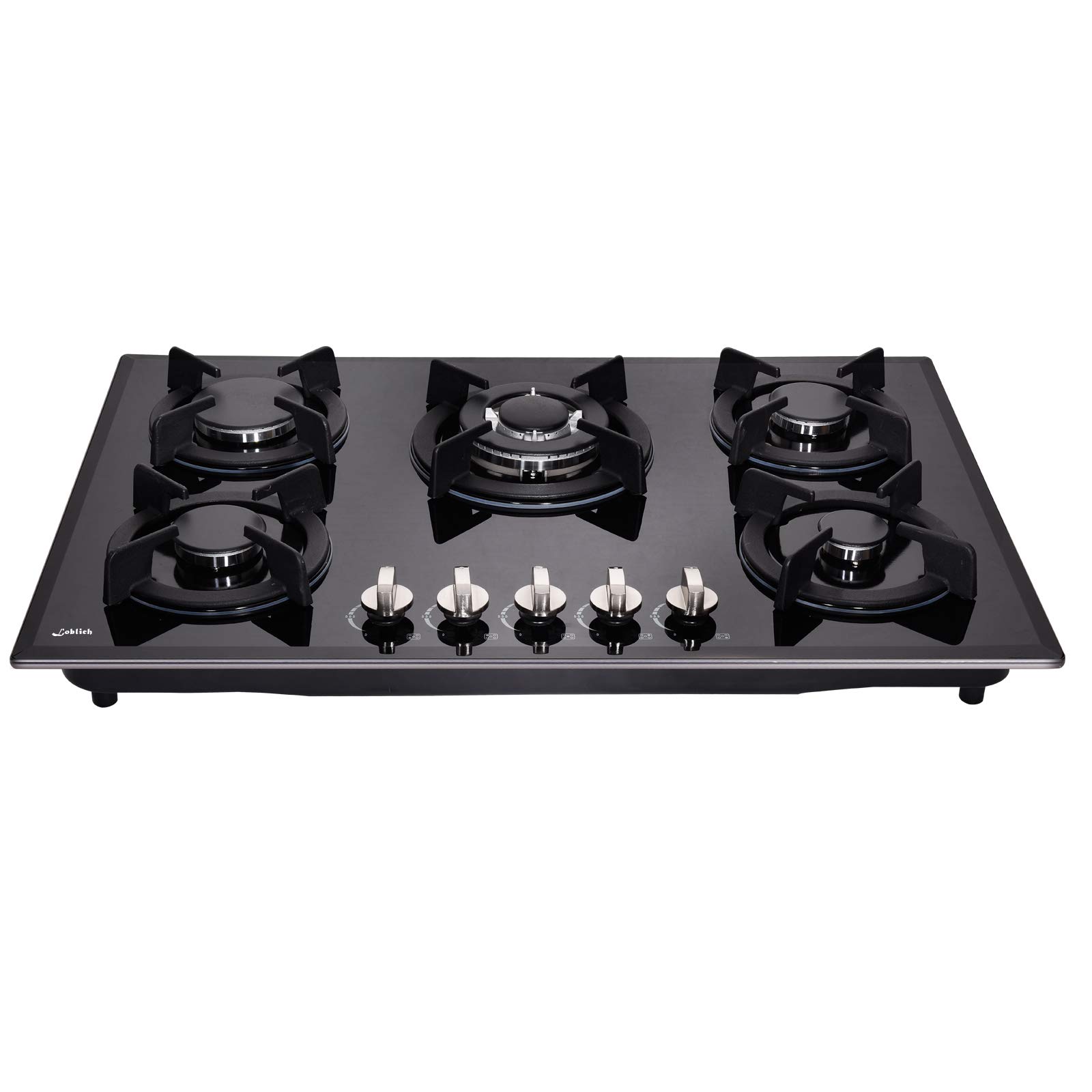 The FLAMETEK™ 5‑Burner Built‑In Tempered Glass Gas Cooktop is a premium cooking solution designed for modern kitchens that demand power, elegance, and efficiency. Featuring a sleek black tempered glass surface, this cooktop adds a luxurious touch while offering exceptional durability and easy cleaning. Equipped with five high‑efficiency gas burners, including a powerful central burner, this cooktop allows simultaneous cooking with precise flame control. The heavy‑duty burner grates provide excellent stability for cookware, while the smooth metal control knobs ensure safe and effortless operation. Perfect for contemporary homes and professional‑style kitchens, the FLAMETEK™ 5‑Burner Gas Cooktop delivers fast heating, even cooking, and long‑lasting performance in a stylish built‑in design. Key Features & Specifications – Five high‑efficiency gas burners – Premium black tempered glass surface – Built‑in cooktop design for modern kitchens – Central high‑power burner for fast cooking – Durable cast iron pan supports – Smooth, heat‑resistant control knobs
