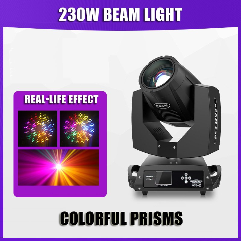 BEAM 230 uses 1PCS OSRAM HD 7R230 230W projection lamp (10200 lumen, 7800K, 2000 hours lifespan). It can compare to 2000W projector light. It has a short arc and compact design, uniform and smooth lighting output. BEAM 230 is also equipped with a mirror, providing the perfect lighting calibration.