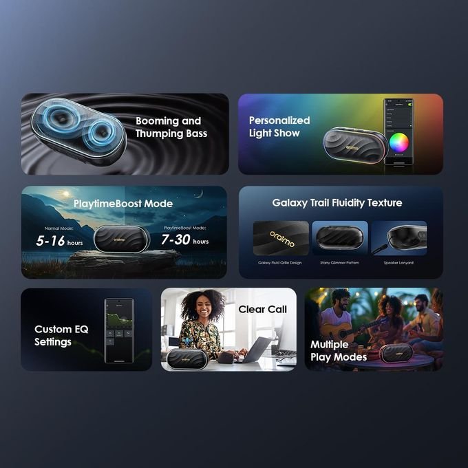Elevate your audio experience with the Oraimo SpaceBox Wireless Bluetooth Speaker Portable 8W FM. Enjoy up to 16 hours of music freedom!