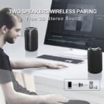 【True 360°Stereo Sound & IPX5 Waterproof】Stereo sound with full bass—the bluetooth speakers delivers immersive sound with rich bass, mids and highs, dynamic sound. Furthermore, even at maximum volume, there is no breaking sound. It performs in the same way as the live concert performance.